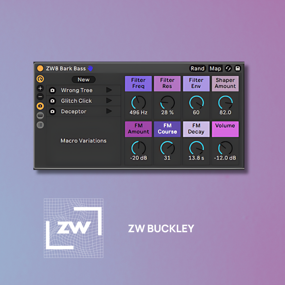 Bark Bass is a free instrument rack for Ableton Live 12. Compatible with Intro, Standard, and Suite.